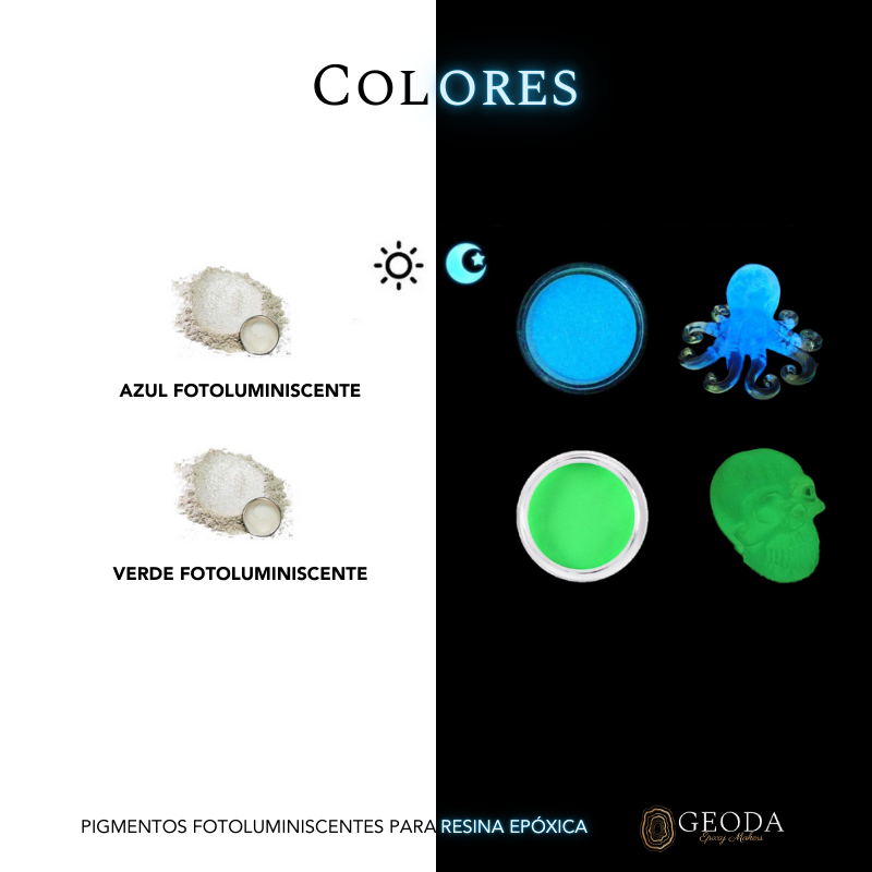 Los pigmentos fotoluminiscentes para resina epóxica son pigmentos en polvo especialmente formulados para crear efectos que brillan en la oscuridad.